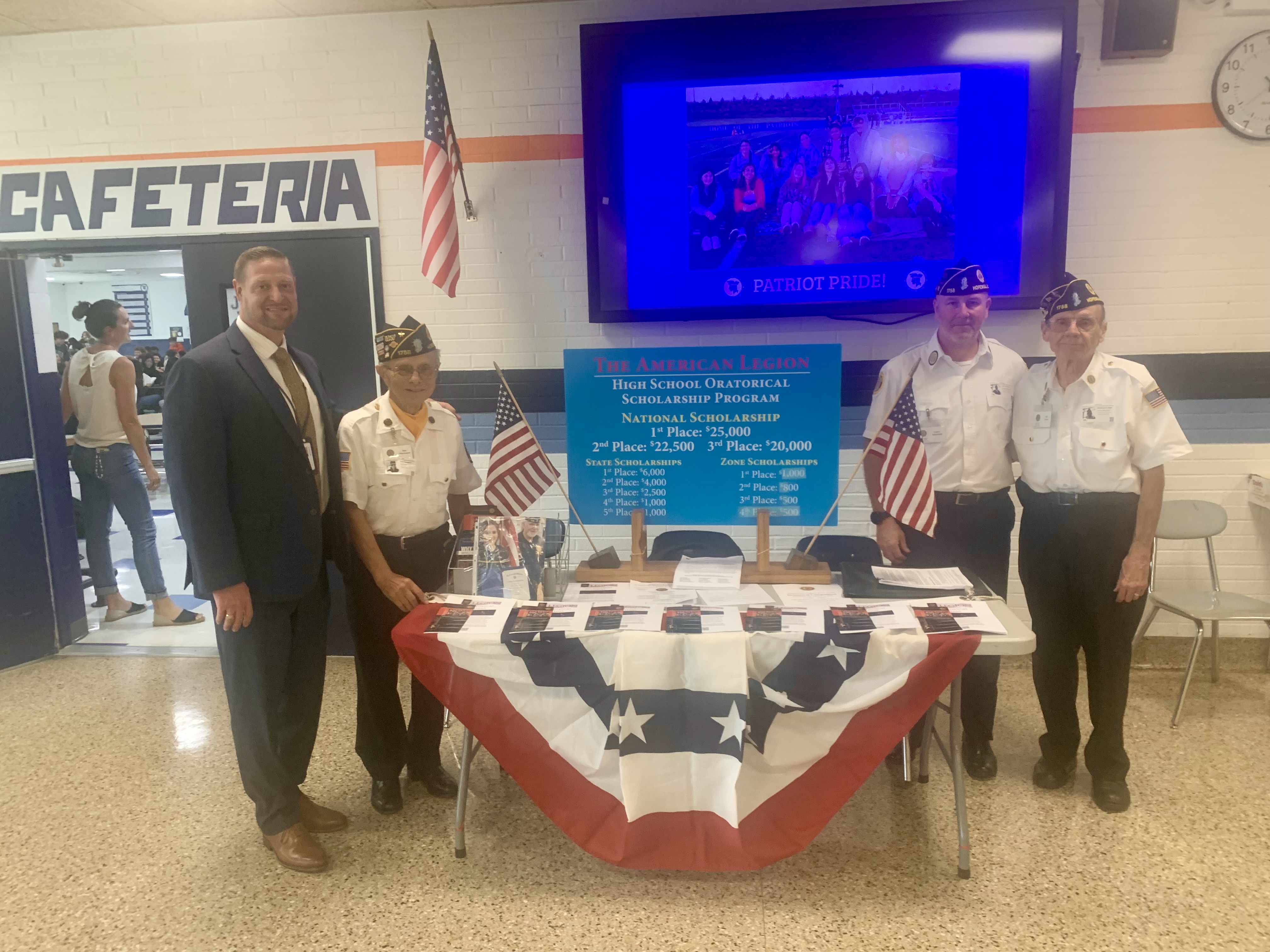 On Wednesday Sept. 24, Commander Lance Ashworth, along with John Call, Bill Meyer and Dan Oberhauser, went to John Jay High School to recruit candidates for Post 1758's annual oratorical contest. Many students showed interest in participating, and about two dozen took information packets. Let's hope that this year we get enough participants to make it a real contest.