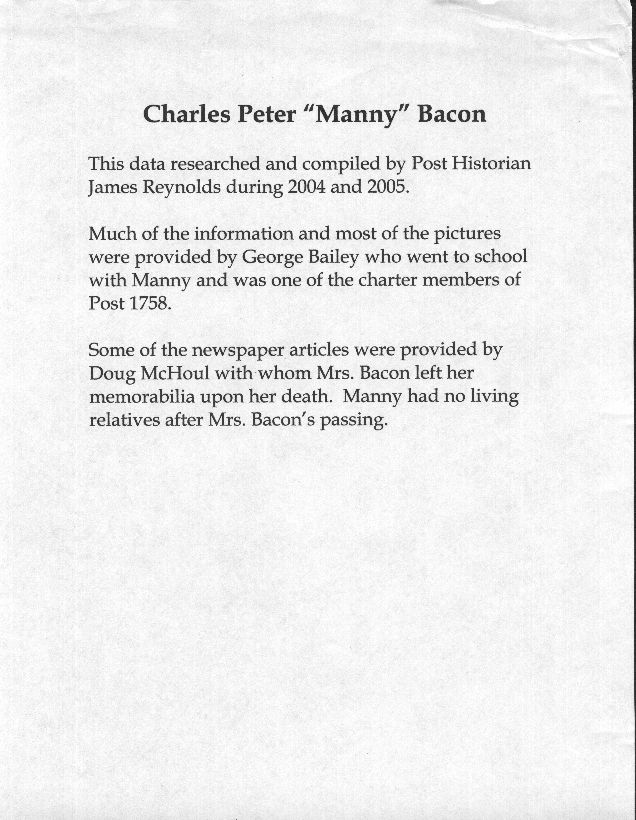 Thanks to George Bailey (charter member and Past Commander) and Doug McHoul whom Manny's Mother entrusted with memento's of Manny.